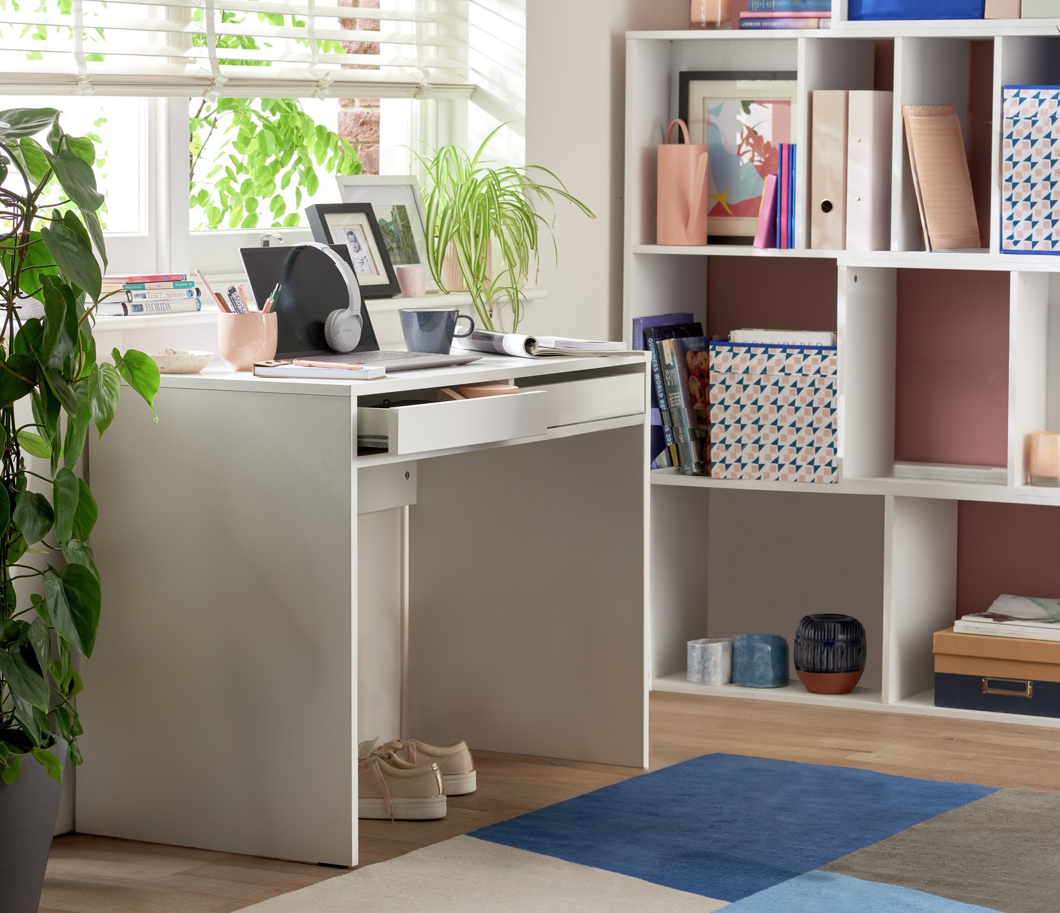 Working from home? Our grey desk is conveniently sized to fit in perfectly. At 1 metre length, it still offers loads of surface space for a laptop, desktop, or phone charger with plenty of space to slide your chair underneath. Two easy glide drawers give plenty of room for papers, pens, staples, and office essentials. Neat. . Part of the Pepper collection. . Made from melamine.; 2 drawers.; Easy cable access.; Self-assembly – 2 people recommended.; If this product is over 60cm high it must be securely attached to the wall to prevent overturning.; General information: By choosing FSC certified products, you are supporting responsible management of the world’s forests.; Manufacturer’s 1 year guarantee.; Dimensions: Size H76.5, W100, D50cm.; Under desk chair space H61.3, W97cm.; Maximum load capacity of desk 10kg.; Weight 27kg.; Packaged dimensions: Package dimensions H15.8, W53.8, D80.9cm.; Second package H25, W7.5, D43.4cm .