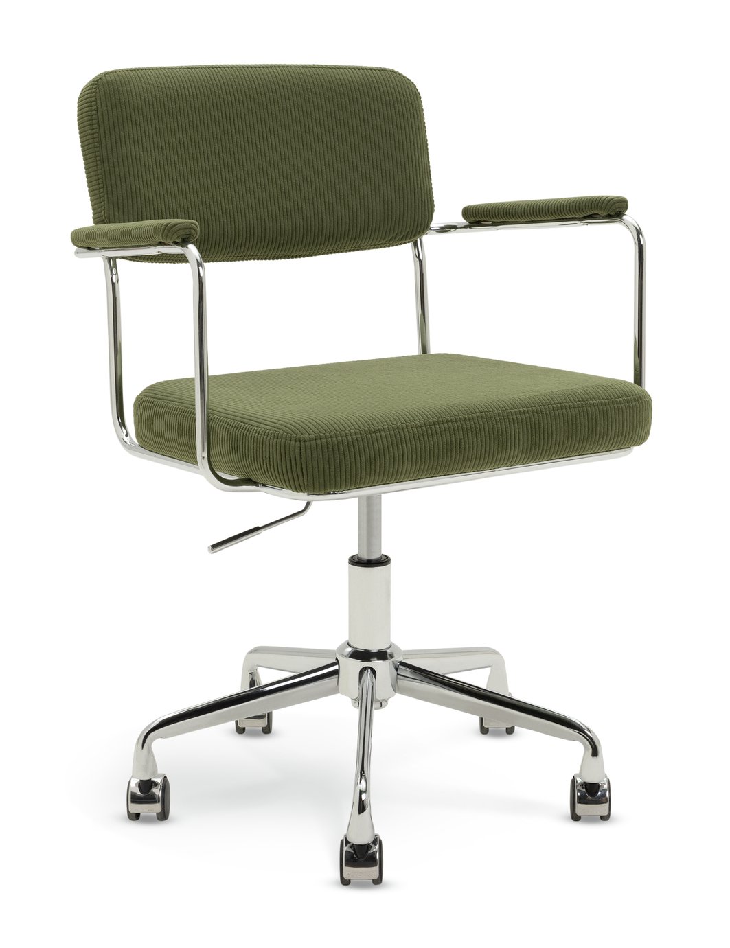 Work matters. So choose an office chair you love to sit in. Ezra won’t disappoint. With a cool mid-century vibe, it also wins in the comfort stakes. With foam-filled, olive green upholstery that’s supportive but soft. And a height adjustable, sleek stainless steel frame on easy glide castors. . Part of the Ezra collection. . Metal frame with fabric seatpad and fabric backrest.; Swivel .; Mounted on castors for easy mobility.; Self-assembly.; Dimensions: Overall maximum chair size H98, W59.5, D54.5cm.; Seat height adjustable from 45 to 53cm.; Seat height 45cm.; Seat size W48, D44cm.; Maximum user weight tested for 110kg.; Weight 11.16kg.; Packaged dimensions: Package size H41, W61, D55cm.; General information: By choosing FSC certified products, you are supporting responsible management of the world’s forests.; Manufacturer’s 1 year guarantee.