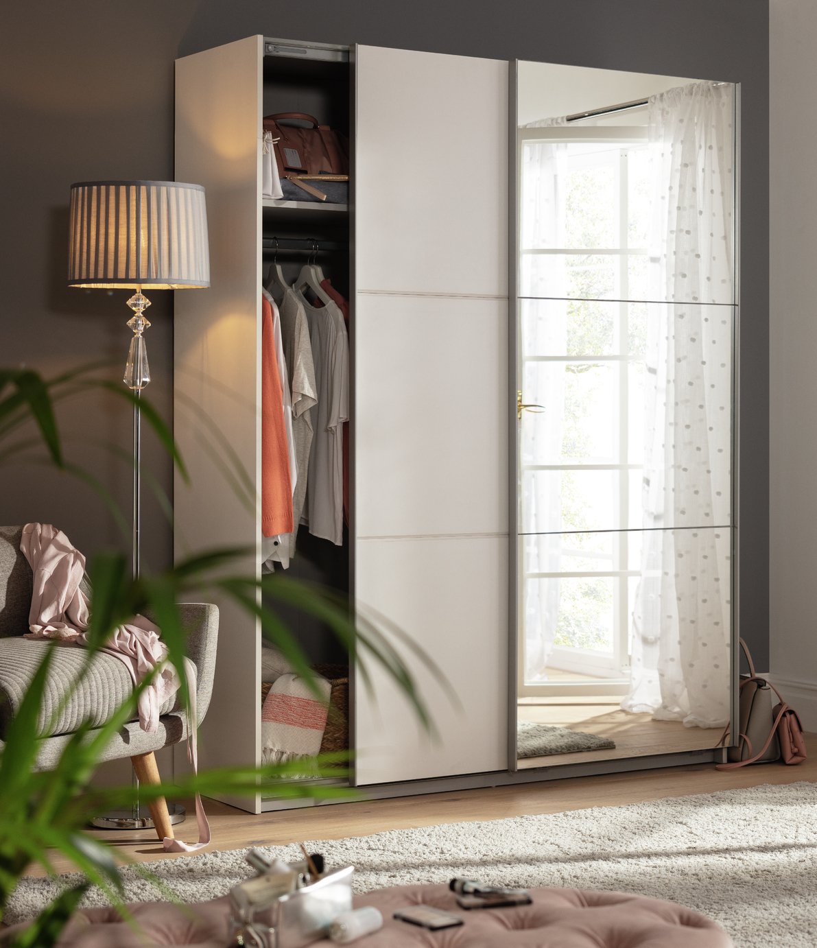 Fresh and contemporary, our Holsted mirrored wardrobe offers plenty of storage. Streamlined and space saving, the 2 sliding doors glide easily on German engineered metal runners. A full width rail and deep top shelf provides lots of hanging room and stacking space. Slide over, make way for this smooth operator. We’ve lots of bedroom furniture to suit your style. Take a look at our chests of drawers, dressing tables, bedside cabinets and choose your faves. Made in the UK. . Check out the Holsted Internal Chest (sold separately). It’s a set of drawers made to fit inside your wardrobe – perfect if you don’t have space for an extra chest in your bedroom. The Holsted wardrobe range is available in a variety of finishes and sizes. Check out our range of money saving packages to kit out your whole bedroom. . Part of the Holsted collection. . Made of wood effect.; Metal handles.; 2 doors.; 1 mirror.; Mirror covers full door.; 2 fixed hanging rails.; Hanging rail holds up to 10kg.; 2 fixed shelves.; Self-assembly – 2 people recommended (includes wall fixings).; If this product is over 60cm high it must be securely attached to the wall to prevent overturning.; Dimensions: Size H200.5, W150, D60cm.; Internal hanging space H141, W72.7, D51cm.; Handle size: L195, W3.5cm.; Weight 103kg.; Package Dimensions: Package 1 dimensions: H160, W53, D10cm.; Package 1 weight: 30kg.; Package 2 dimensions: H210, W63, D6cm.; Package 2 weight: 46kg.; Package 3 dimensions: H86, W67, D7cm.; Package 3 weight: 17kg.; General information: By choosing FSC certified products, you are supporting responsible management of the world’s forests.; Manufacturer’s 1 year guarantee.